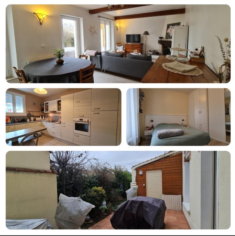 et un agréable jardin, cuisine aménagée équipée de qualité et hyper fonctionnelle, salle d'eau récente, 3 chambres. Grand Garage accolé. Idéal pour un premier achat ou pour une personne souhaitant